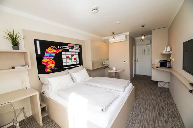 Vďaka skvelej polohe je hotel aj perfektným východiskovým bodom na spoznávanie Olomouca. Nachádza sa v tichej ulici neďaleko vlakovej stanice, asi za 15 minút dôjdete do centra mesta (alebo za 5 minút dôjdete električkou). Prezrite si orloj, obdivujte pamiatky, zájdite do divadla alebo múzea alebo navštívte úžasné kaviarne a reštaurácie. A do hotela sa vráťte, keď budete potrebovať – stačí odomknúť mobilom.