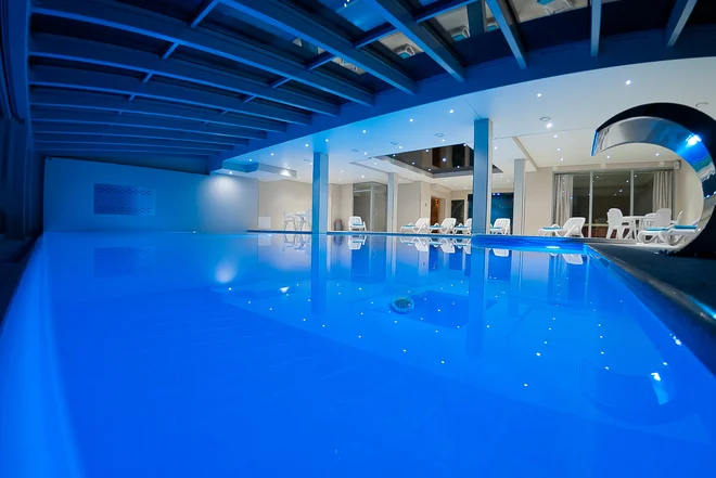 - vnútorný bazén, suchá a parná sauna, vírivka