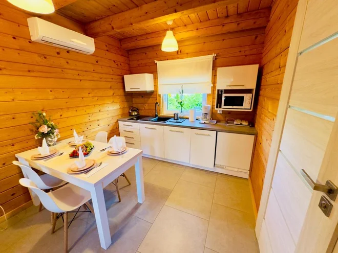 Domčeky sa nachádzajú len 500 metrov od pláže a ponúkajú všetko, čo od pohodlnej dovolenky očakávate. V každom z nich nájdete dve spálne a rozkladaciu pohovku, poskytnú tak príjemné zázemie až 6 výletníkom. Disponujú tiež obývacou izbou s plne vybaveným kuchynským kútom, v ktorom nechýba chladnička, mikrovlnka, toastovač, rýchlovarná kanvica, umývačka aj malá varná doska. Bez problémov tu tak pripravíte raňajky, obedy aj večere pre nenásytných stravníkov.