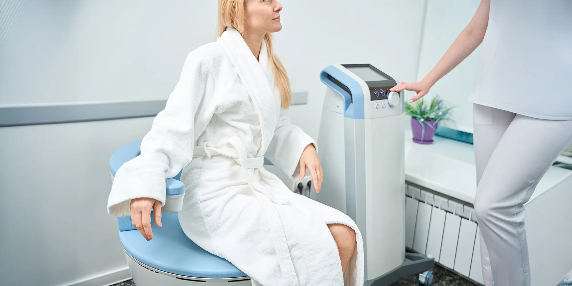 Na stoličku si jednoducho sadnete a technológia začne automaticky posielať cielené elektromagnetické impulzy, ktoré posilňujú svaly panvového dna a zlepšujú prekrvenie orgánov v malej panve. Výsledkom je pevnejšie panvové dno, kontrola nad močovým mechúrom a podpora sexuálnych funkcií. Silnejšie svaly znamenajú aj lepšiu kontrolu tlaku v oblasti konečníka a menšie namáhanie počas vyprázdňovania, čo je dôležité pri hemoroidoch. Počas ošetrenia necítite bolesť, len jemné pulzovanie.