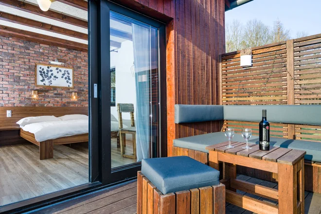 Celý areál hotela je novo postavený, takže si tu užijete skutočný komfort. Pripravený pre vás bude luxusný senník, v ktorom nechýbajú dve lôžka s obliečkami z českého ľanu, kúpeľňa so sprchovacím kútom, WC a audiosystémom, vysokorýchlostné Wi‑Fi pripojenie, trezor, minibar a televízia. Určite vás poteší vonkajšie posedenie s terasou. Niektoré senníky majú balkón na prvom poschodí.