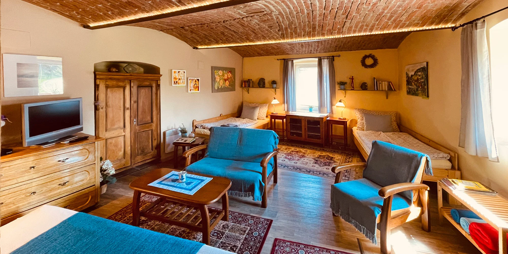 Trojica štvorlôžkových apartmánov je umiestnená v budove niekdajšieho statku, ktorý pri prekrásnom údolí Vltavy stojí už viac ako 400 rokov. Všetky apartmány sú vybavené kúpeľňou so sprchovacím kútom a toaletou, nechýba ani kuchynka s kávovarom. Každý apartmán má vlastný vchod, aby bolo hosťom zaistené súkromie.