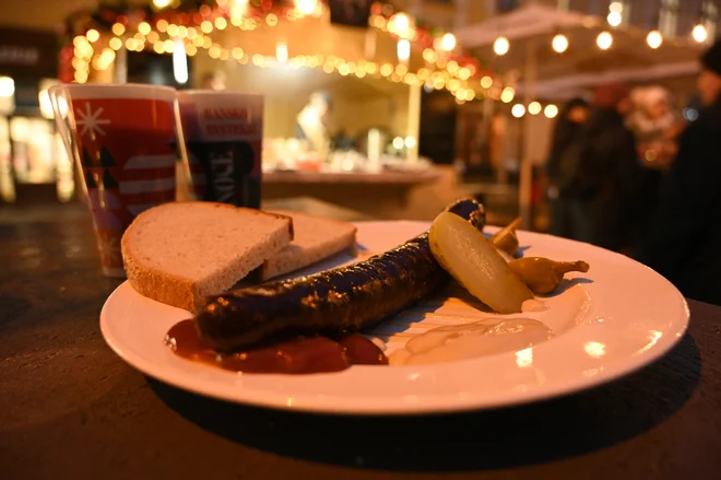 Vianočný punč a klobása z vianočného mestečka U Kemov