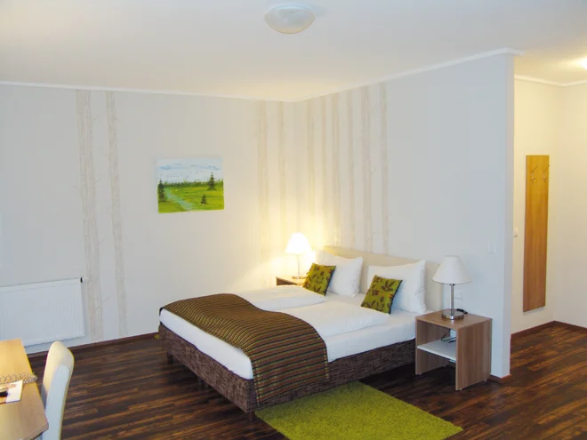 V hoteli pre vás po príchode pripravia moderne zariadenú dvojlôžkovú izbu s vlastnou kúpeľňou s vaňou alebo sprchou, fénom, uterákmi a toaletou. Nechýba ani klimatizácia a telefón. Keď sa vrátite unavení z túry či cyklovýletu, ľahnete si na pohodlné lôžka a môžete si k odpočinku zapnúť televíziu. Samozrejmosťou je aj Wi‑Fi pripojenie zdarma.