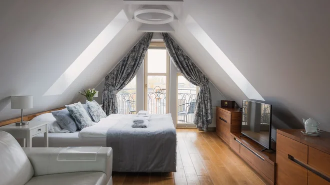 V ponuke vily však nájdete aj exkluzívny apartmán s rozlohou 73 m², ku ktorému patrí nielen priestranná spálňa a obývacia izba, ale aj veľká terasa a moderná kúpeľňa so sprchou aj rohovou vaňou. Ideálne na romantický kúpeľ pri sviečkach, nemyslíte?