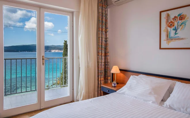 Izby sú zariadené jednoducho a elegantne, s dôrazom na pohodlie a pokoj. Hlavnou hviezdou je však výhľad. Môžete si vybrať, či budete radšej zaspávať s pohľadom na majestátnu horu Sv. Eliáša, alebo sa prebúdzať s fascinujúcim pohľadom na otvorené more a ostrovčeky. V ponuke je izba Comfort, ktorá predstavuje ideálnu voľbu pre tých, ktorí hľadajú základný komfort a pokojné útočisko na oddych, a izba Superior, ktorá vám ponúkne väčší priestor a vyššiu úroveň pohodlia pre dokonalú relaxáciu, je do nej možné umiestniť aj prístelku. K vybaveniu oboch patrí klimatizácia, televízia, Wi‑Fi a kúpeľňa so sprchou a toaletou.