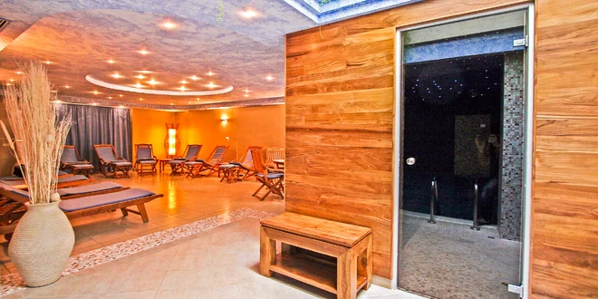 Wellness s rozlohou 450 m2 bude pre vás oázou pokoja i oddychu. Neobmedzene môžete relaxovať v zážitkom bazéne s hydromasážou. V saunovej časti sa zohrejete vo fínskej, infra a parnej saune s aromaterapiou. Následne sa schladíte v studenom bazéne. Nechýba ani relaxačná zóna s čajovým kútikom a zdraviu prospešná soľná izba s vodnými posteľami. V rámci pobytu ešte získate jeden wellness kupón na klasickú či aroma masáž. Polhodinové rozmaznávanie v aroma kúpeli dostanete ako bonus, ak strávite v hoteli viac ako 5 nocí.