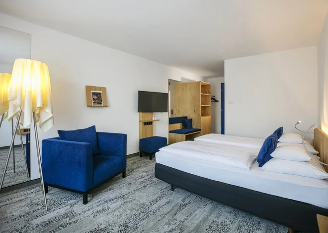 Počas pobytu budete ubytovaní v izbe Comfort. Modernizované izby na 1. až 3. poschodí vynikajú svojimi dubovými prvkami a majú zvukotesné okná pre váš nerušený spánok. Mäkké teplé farby vytvárajú veselú a príjemnú atmosféru. Súčasťou vybavenia je TV s plochou obrazovkou, trezor, telefón, Wi‑Fi, klimatizácia a tiež kúpeľňa s toaletou a sprchovacím kútom alebo vaňou.