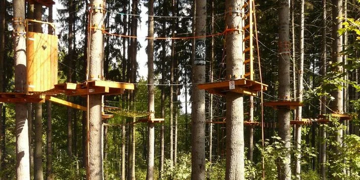 Váš kupón slúži na vstup na nižší aj vyšší okruh a na konci si môžete vybrať obrovský skok alebo lanovku dlhú 60 metrov.