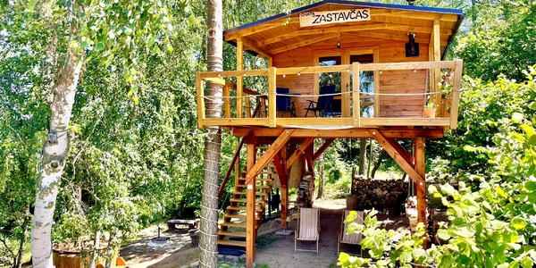 Chata v korunách stromov a relax vo vyhrievanom sude