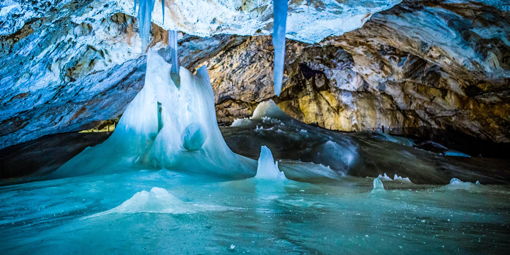 Ľad sa tu vyskytuje vo forme podlahového ľadu, ľadopádov, ľadových stalagmitov a stĺpov.