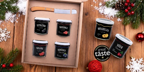 Do vianočného balíčka sa však zmestia aj pochúťky, ktoré obdarovanému pripomenú leto. Sladučké ovocné džemy ako od starej mamy potešia všetkých maškrtníkov.