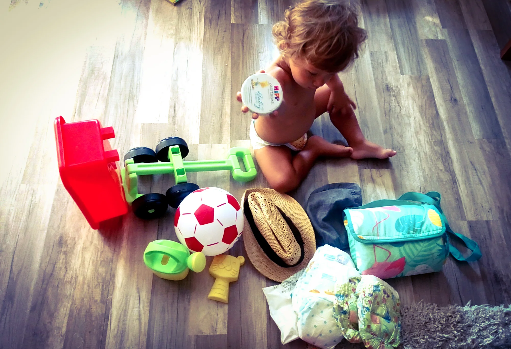 - Nejaká tá obľúbená HRAČKA – my brávame autíčka, ktoré môžu ísť aj do vody – napr. z lega DUPLO. Brávame aj nafukovaciu loptu, kýblik, poháriky, lopatku, krhličku.