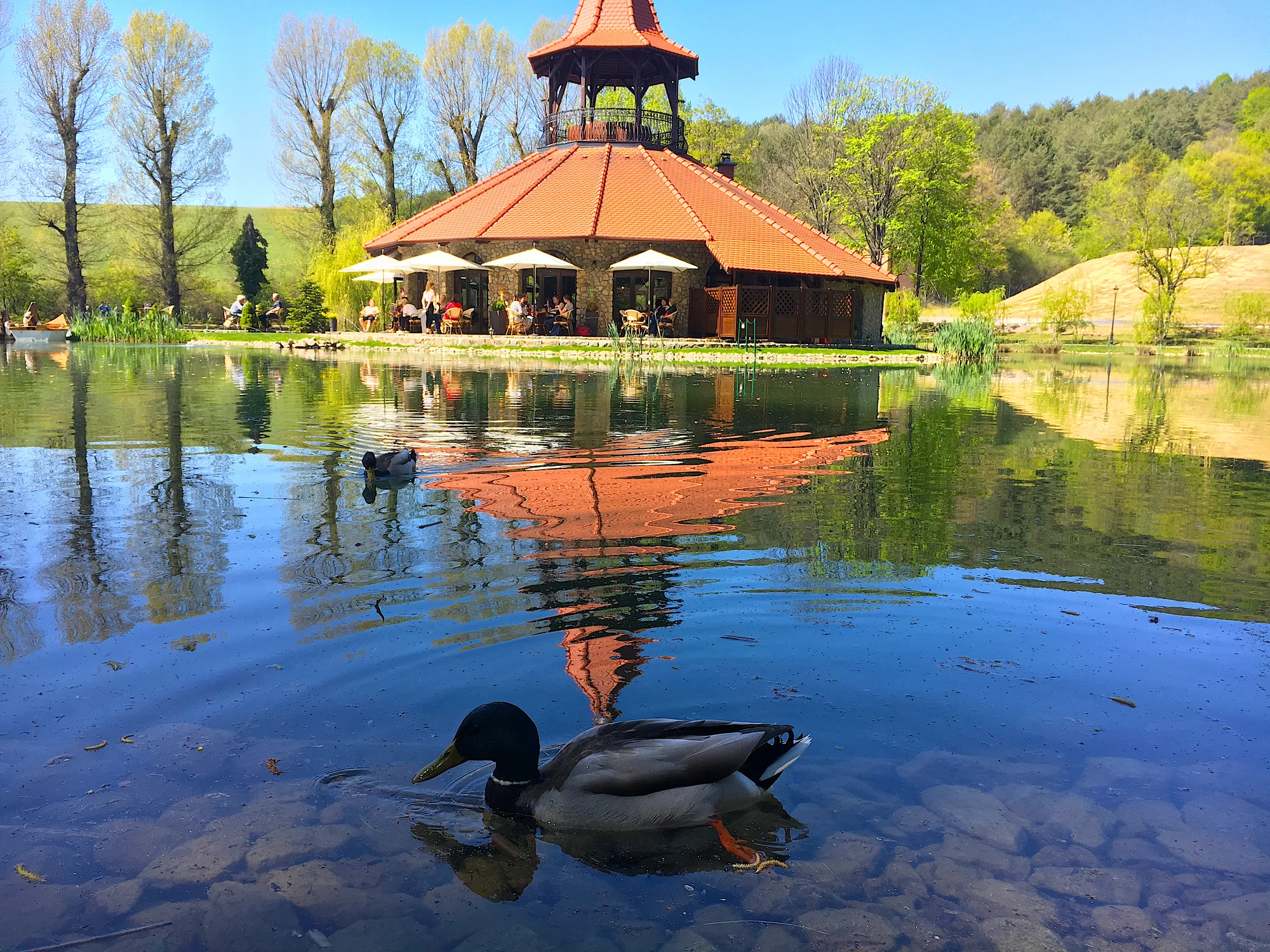 Architekti si naozaj dali záležať. Miesto zahŕňa nádherné zdravé jazero, altánky, krásny trávnik, vodnomilné zvieratká a samozrejme v neposlednom rade dokonale ladenú atmosféru hudbou (občas aj živou), perfektným personálom priamo v kaviarni a skvelou kávou.
