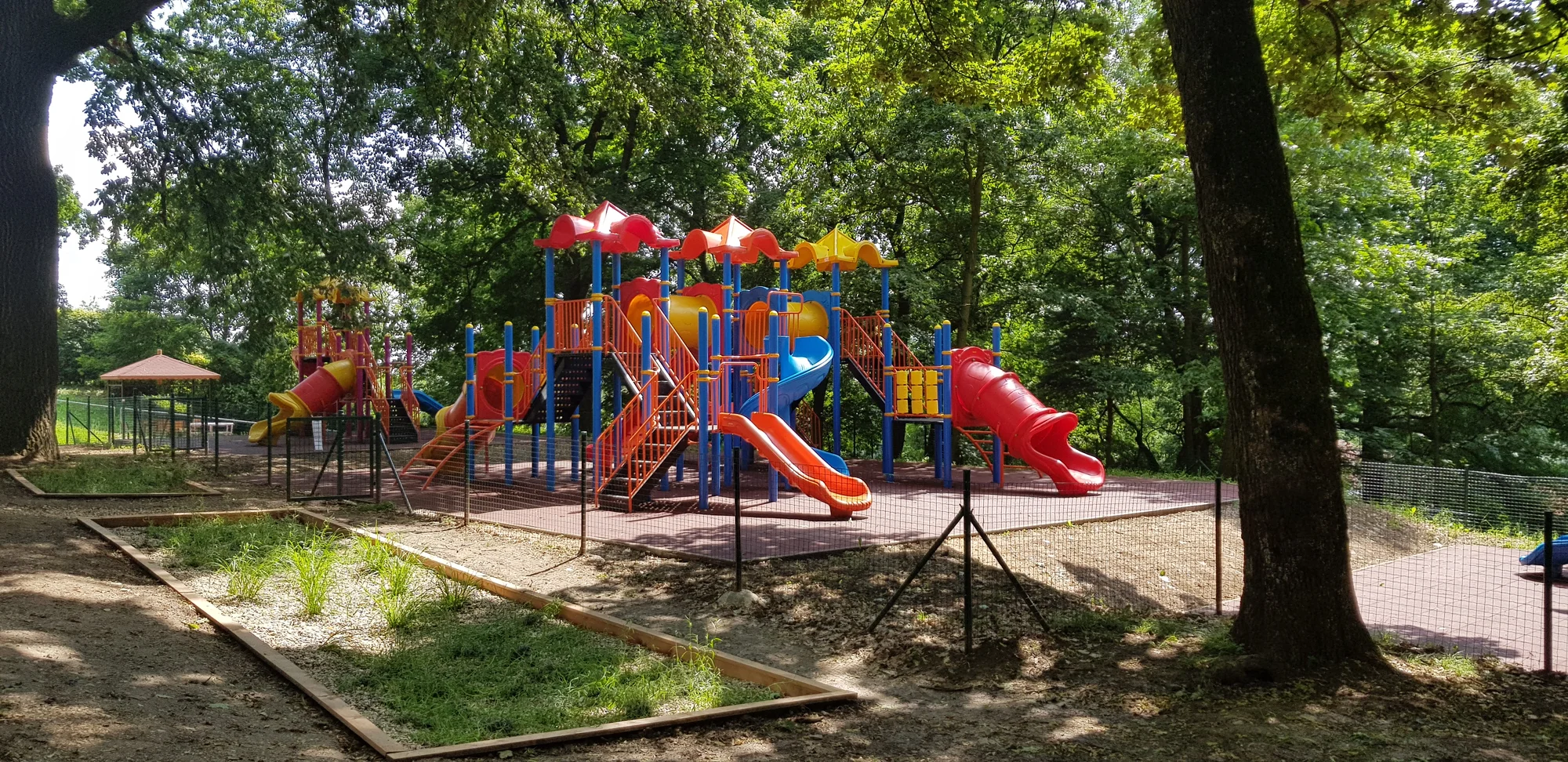 Športové a detské aktivity sú v príjemnom prostredí, ktoré má niekoľko úrovní a terén je mierne členitý. Výhodou týchto detských ihrísk je aj to, že sa nachádzajú priamo pod korunami mohutných listnatých stromov, ktoré vytvárajú príjemnú klímu aj v teplejších dňoch. Pohodu tohto parku si môžete užiť aj na lavičkách, či v dvoch altánkoch na sedenie. Čo v parku ešte potrebuje svoj čas je ale vysadená zeleň, ktorá pôsobí nerozrastene a menej zeleno.