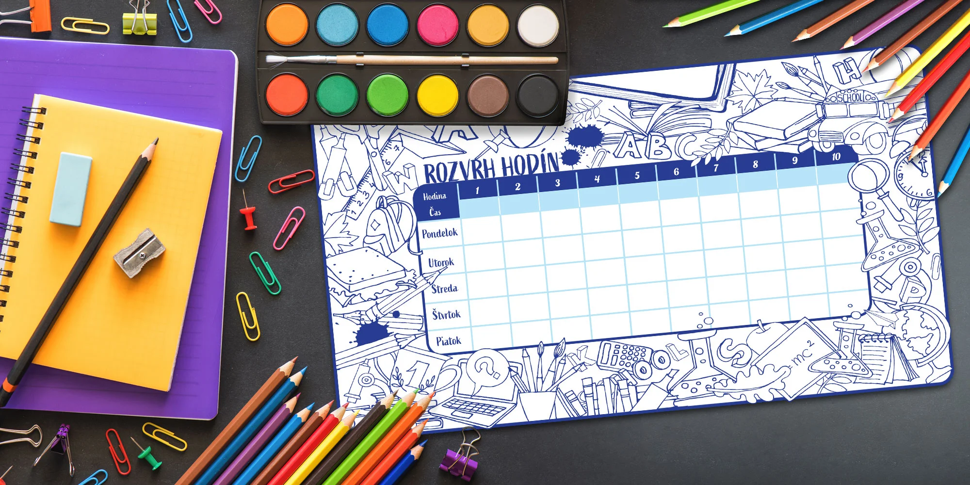 A všetci vedia, že to vie byť veru poriadny chaos! Aby sa však zo školy nestala úplná zoo, prinášame vám prehľadný rozvrh hodín, ktorý bude verným pomocníkom každého žiaka počas celého školského roka. Umiestnili sme naň pomôcky na všetky predmety, s ktorými sa žiaci v škole stretnú a tí si ich navyše môžu vyfarbiť podľa vlastnej fantázie. Tak hor sa do školy spoznať všetky predmety!