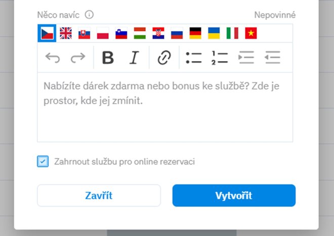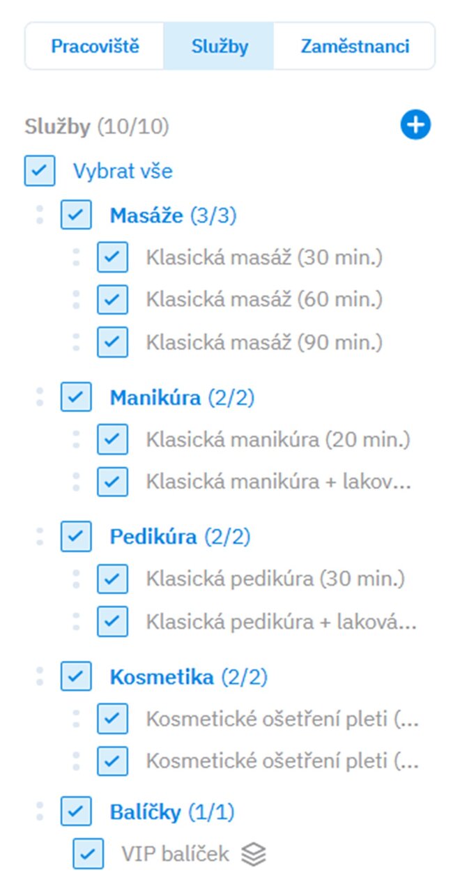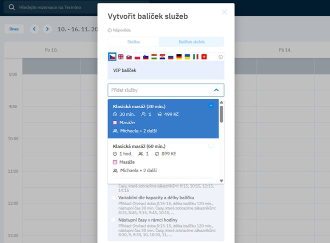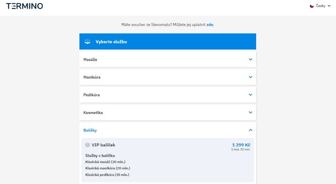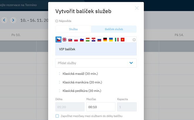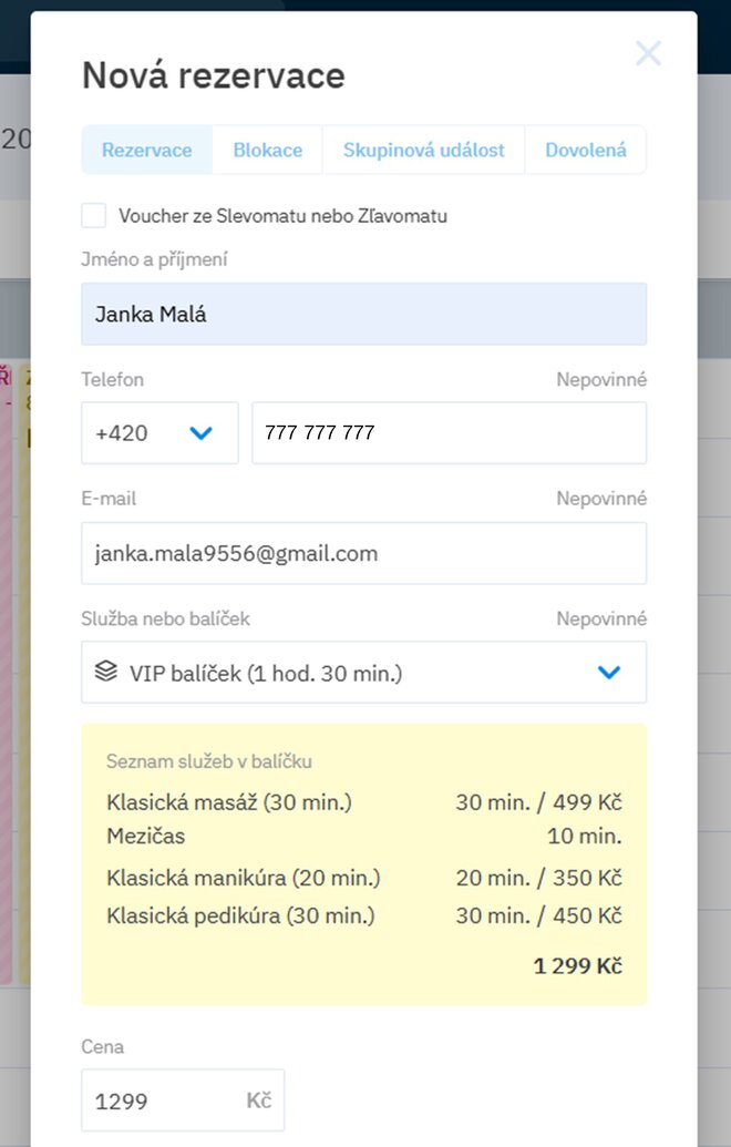 Chúng tôi có tin tức cho bạn – tính năng gói dịch vụ. Nhờ vào đó, bạn có thể dễ dàng tạo các kết hợp hấp dẫn của các dịch vụ của bạn (ví dụ: massage + làm móng tay + làm móng chân), mà khách hàng có thể dễ dàng đặt lịch trực tuyến. Bạn có thể cung cấp các gói này qua Slevomat, hoặc thông qua một liên kết ngoài trực tiếp trên trang web của bạn.