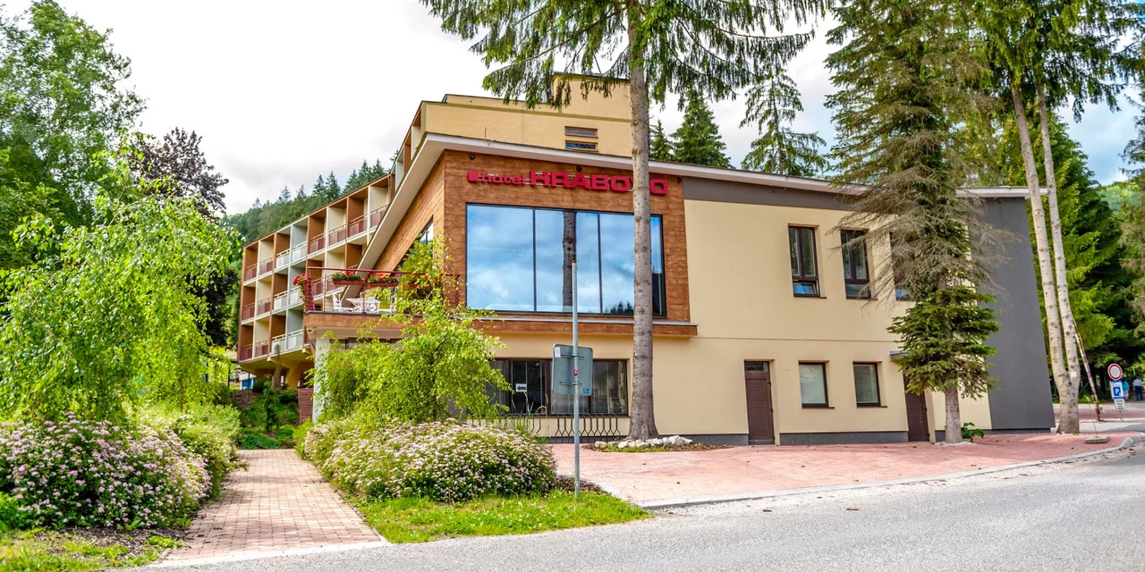Hotel Hrabovo** je situovaný v malebnom kraji s očarujúcim výhľadom na dominantný vrch Čebrať (1054 m.n.m.). Ponúka komfortné ubytovanie v účelne zariadených izbách a profesionálne služby pre všetkých dovolenkárov.