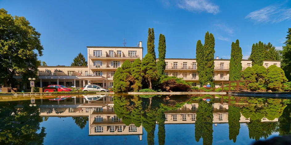Kúpeľný hotel Palace*** patrí medzi najvýznamnejšie stavby pražského architekta Rudolfa Stockara, ktorý pre kúpele spracoval aj regulačný zastavovací plán nového Sliača (1929). Celý sa staval v dvoch samostatných etapách a leží na severnom okraji kúpeľného areálu. V rokoch 1927 – 1931 vznikla sedempodlažná spoločensko-reštauračná časť s hospodárskym zázemím. Na pôdoryse tvaru písmena L tak vznikol moderný dvojúrovňový komplex, tzv. Dvorana, s tromi veľkými reštauračnými sálami, kaviarňami a barmi, ktoré sú opatrené galériami presvetlenými veľkými výsuvnými oknami. Z vonkajšej strany ich lemujú kryté kolonády alebo otvorené terasy. Na prízemí severného krídla bola divadelná sála, respektíve kino. Zo západnej galérie kina je prístupná otvorená lodžia, na ktorej vyhrávali hudobníci dolu na otvorenom parkete sa zabávajúcim hosťom. Zázemie objektu tvoril hospodársky dvor a kuchyne na každom podlaží. Nad prienikom obidvoch krídiel vyrástla mohutná vežovitá stavba, ktorá napokon nebola postavená v uvažovanej výške. Na jej streche dodnes vidieť nápis KÚPELE SLIAČ.