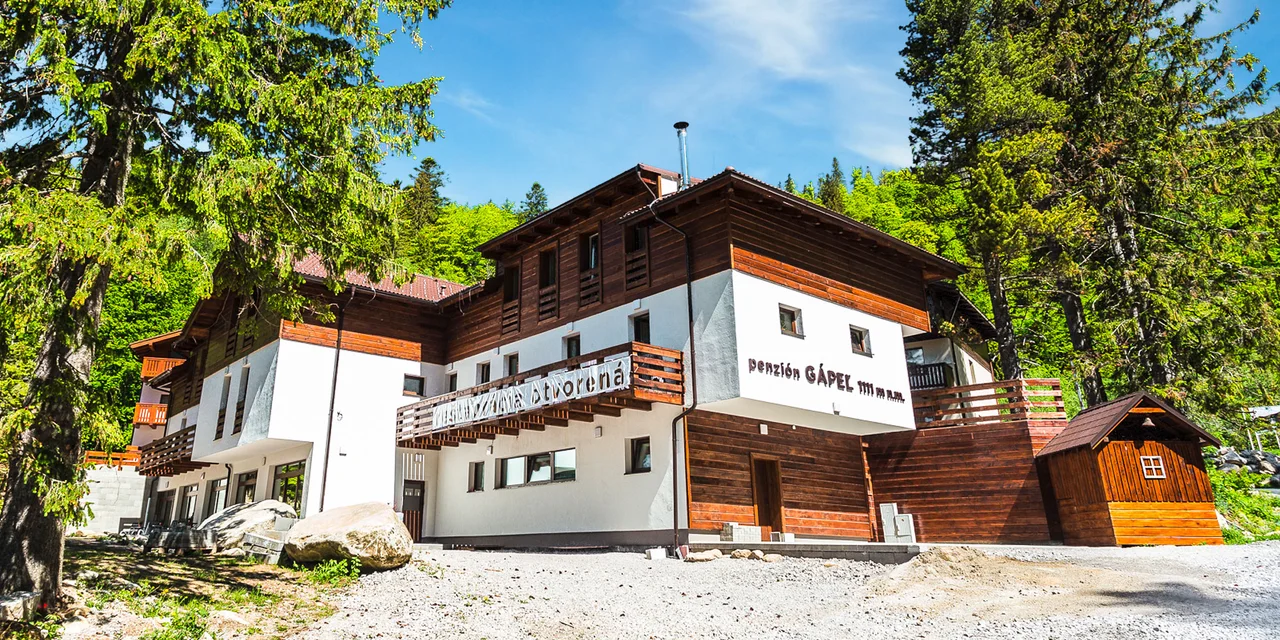 Penzión Gápeľ je situovaný na južnej strane Chopku v nadmorskej výške 1111 m.n.m. vo vzdialenosti 800 m od nástupnej stanice lanovky Srdiečko – Kosodrevina. Vedľa penziónu sa nachádza centrálne parkovisko odkiaľ sa hostia skibusmi pohodlne dostatnú priamo k lanovkám a vlekom. SKI IN poloha penziónu umožňuje zlyžovanie priamo zo zjazdovky do vzdialenosti 100 m od penziónu.