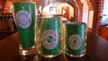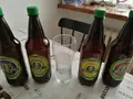 Domáce fľaškové pivo a pohár s logom pivovaru