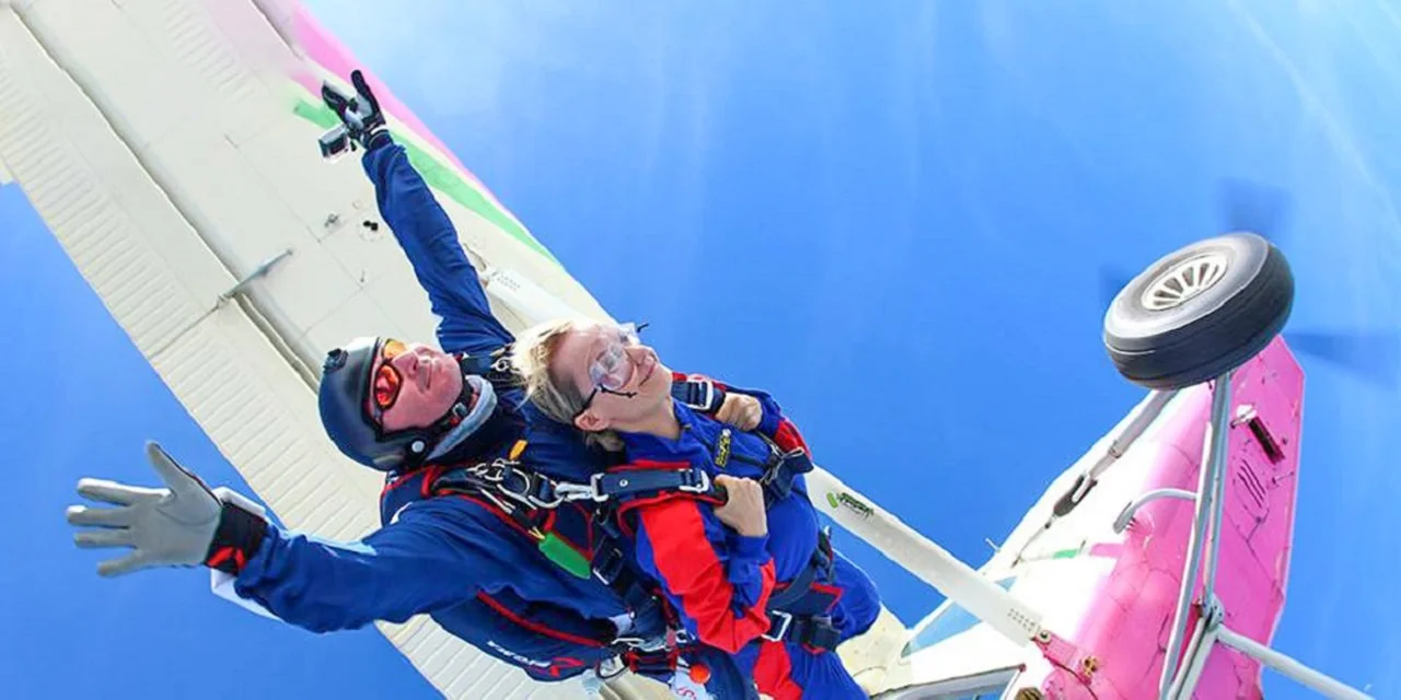 Tandemový zoskok padákom je skvelá adrenalínová zábava, ktorá sa začína výskokom z lietadla vo výške 4000 metrov. Nasleduje 50 sekundový voľný pád rýchlosťou 200 km/h a potom bezpečné pristátie po 8 minútovom lete na padáku. To všetko s elitou medzi profesionálnymi tandem inštruktormi a na najkvalitnejšej padákovej technike, aká je v súčasnosti na svete k dispozícii. S nami tandemový zoskok absolvujete na výborne vybavenom letisku Slavnica. Skáčeme z výšky 4 kilometre, z rýchleho turbovrtuľového lietadla Pilatus PC-6 Porter.