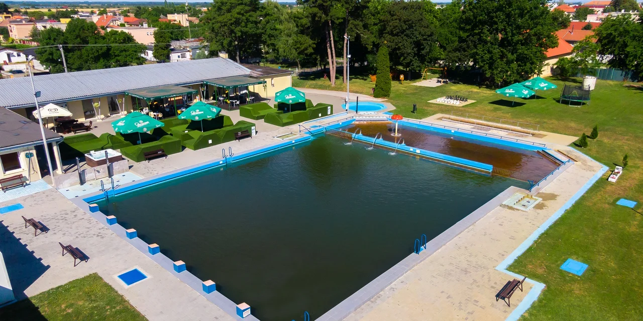 Súčasťou areálu je aj moderná terasa, bufet, ležadlá, šatníkové skrinky a vonkajšie sprchy. Možnosť využiť aj detské ihrisko, trampolínu a záhradný šach v areáli kúpaliska (bez príplatkov).