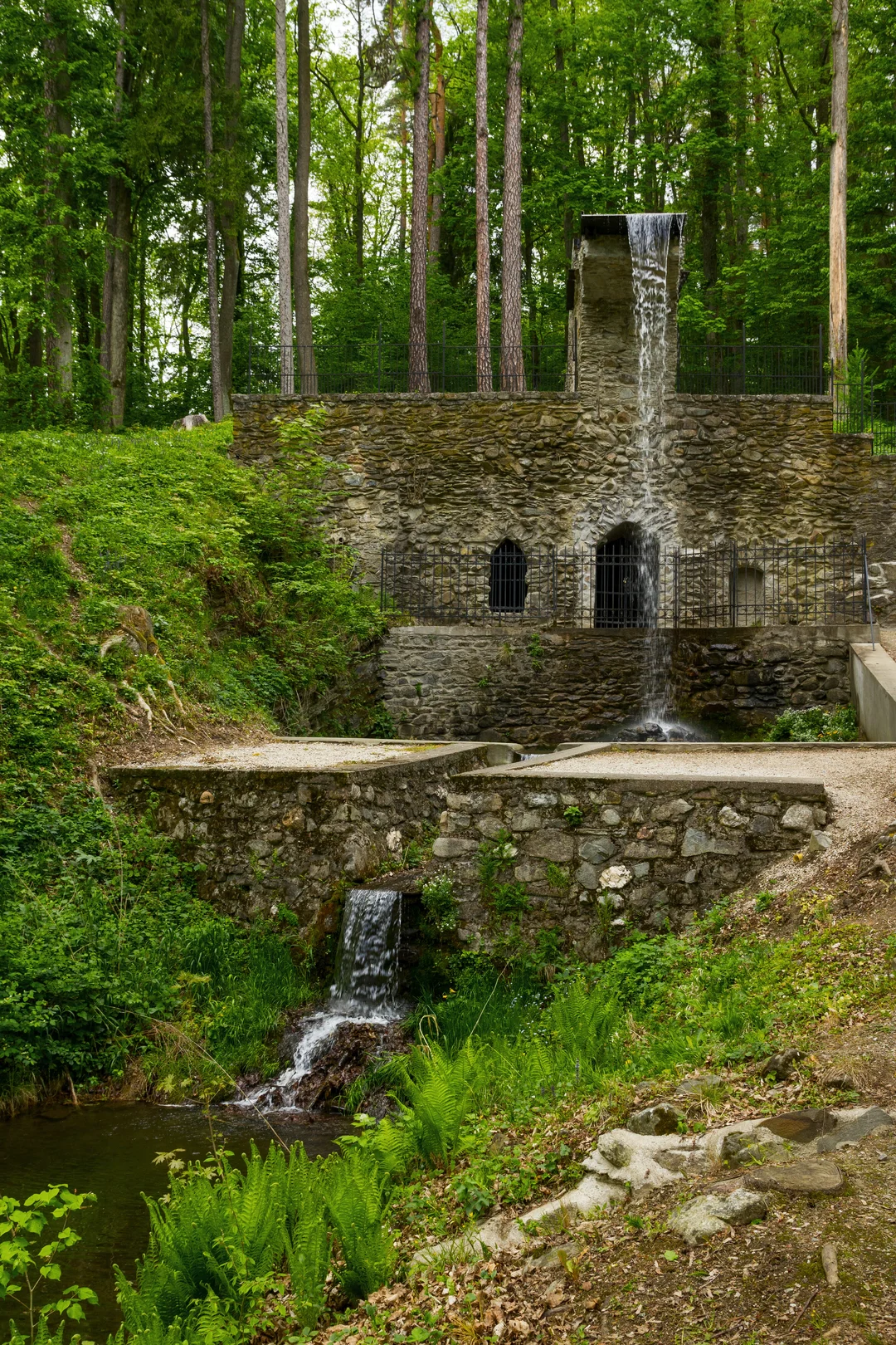 Počas prechádzky parkom uvidíte množstvo architektonických pamiatok, napríklad slobodomurársky a čínsky pavilón, japonský most či Hermesovu studňu. Za zmienku stojí Rímsky vodopád imitujúci zrúcaninu antického akvaduktu. Okrem toho, že ide o vzácnu technickú pamiatku, je vodopád zaujímavý aj tým, že v jaskyni pod ním kedysi chovali ľadové medvede. V roku 1909 si ich sem, ešte ako mláďatá, priviezol gróf Karol Andrássy IV. zo svojej poľovačky v Nórsku a Grónsku. Išlo tak o prvý chov ľadových medveďov na svete.