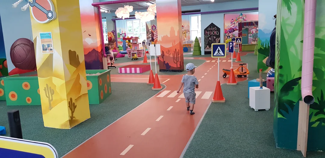 Galéria vás prekvapí svojím odlišným konceptom od bežných detských herničiek. Centrálny priestor tvorí detské dopravné ihrisko s cestami, značkami, kruhovým objazdom, priechodom pre chodcov, a samozrejme, s detskými dopravnými prostriedkami. Zvyšný priestor pomyslene rozdelený na desať herných zón, ktoré sú pripravené naozaj originálne.
