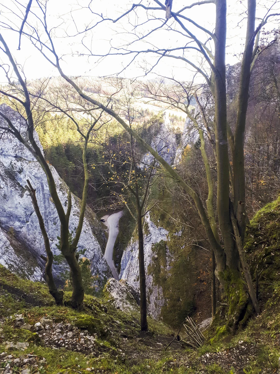 My sme si toto miesto pozreli aj z výšky a chodníčkom nad kaňonom sme sa dostali až k jaskyni pod Černokňažníkom. Nová perspektíva dodala tomuto miestu úplne inú atmosféru. Neďaleko od tiesňavy začína žltá turistická značka (pri kempe) na Veľký Manín. Ak niekedy prídete na toto miesto, určite túto trasu nevynechajte. Zo samotného Veľkého Manína nie je síce veľmi pekný výhľad pre husté stromy, ale cestou narazíte na dýchberúce miesta. Pár krát budete musieť zísť práve zo značenej trasy a to aj pri výstupe na Veľký Manín.