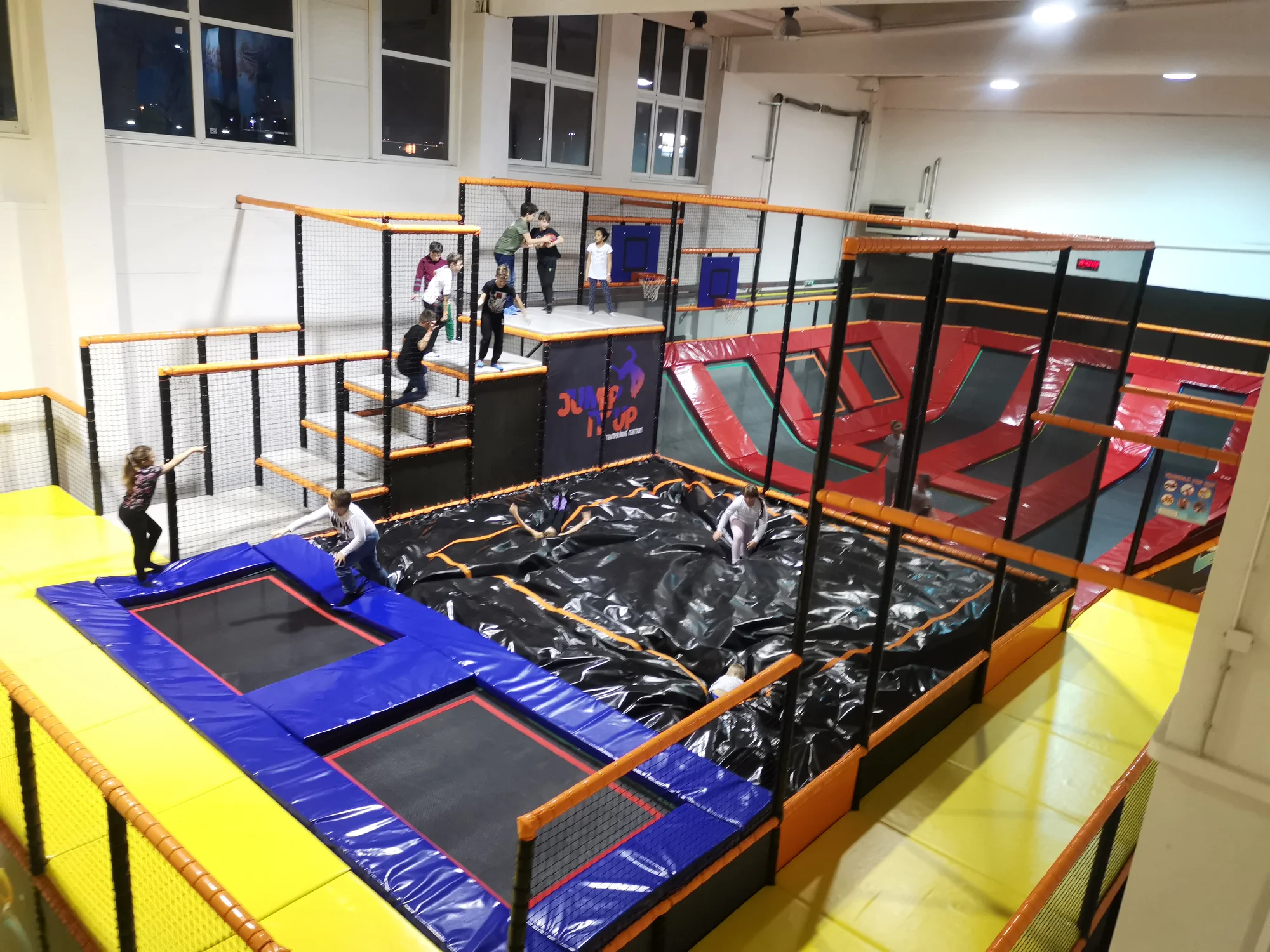 Trampolíny nemusia byť len okrúhle a nudné. Môžu mať rôzne tvary, dĺžky a dokonca môžu byť umiestnené aj šikmo. Jump, teda po anglicky skok je v tomto centre prístupný aj pre malých, či veľkých budúcich kaskadérov, ktorí sa neboja vyskúšať si voľný pád z výšky 2,5m, menej odvážny z výšky 1,8m do takzvaného air bagu, ktorý má viac ako 6 metrov. Všetky deti, ktoré som tu videla, bavila práve táto možnosť najviac.