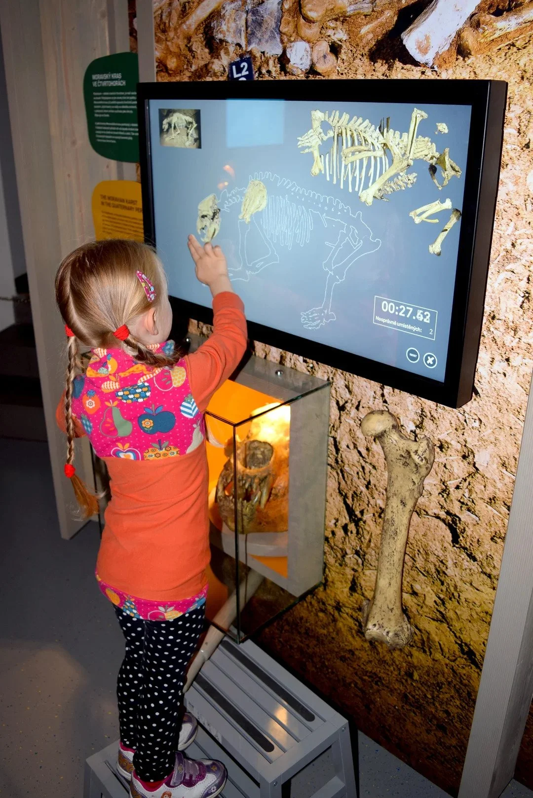 Našu Elišku sme nemohli odtrhnúť od skladania kostry dinosaura a zaujalo ju aj pexeso a iné zaujímavé stanovištia. Na konci expozície sa nachádza sála s kinom, kde si budete môcť pozrieť 3D film alebo niekoľko rozprávok, povestí či dokumentov z Moravského krasu. A ak deti dostatočne neunaví ani kino, stačí s nimi zájsť do vnútornej herne, v ktorej sa nachádza jaskyňa, hojdačka a množstvo ďalších atrakcií.