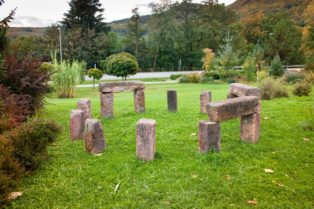Našli sme tu aj stroje na cvičenie v exteriéri, „minidivadlo“ či detské ihrisko. Mňa najviac zaujalo niekoľko naukladaných kameňov, pripomínajúcich svetoznámy Stonehenge. Kúsok od parku si navyše môžete zakúpiť aj známe Kúpeľné oblátky.