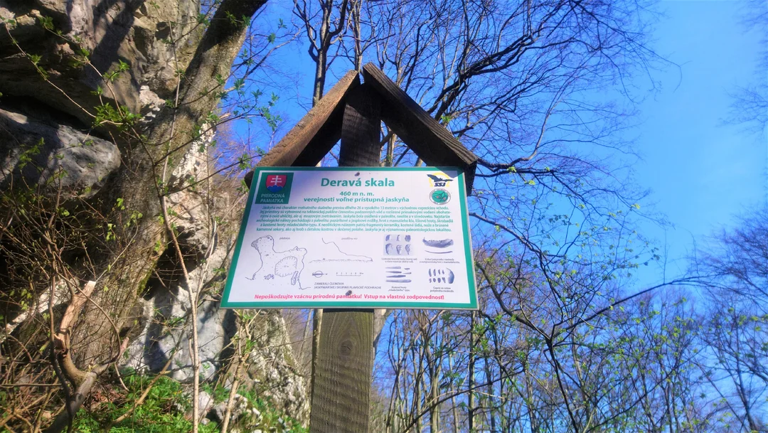 Pri vstupe do lesa nájdete informačnú tabuľu, ktorá prináša informácie o náučnom chodníku Plavecký kras, kam spadá aj jaskyňa Deravá skala. Celková dĺžka náučného chodníka je 10 km. Z Plaveckého Mikuláša po Deravú skalu sú to však len približne 2 km. Cesta vám v závislosti od rýchlosti zaberie zhruba 45 minút. Približne 400 metrov po tom, ako potok prechádza z pravej strany na ľavú, zbystrite pozornosť, na pravej strane totiž zbadáte odbočku k samotnej jaskyni. Ak máte kočík, nechajte ho na asfaltke, čaká vás totiž strmé stúpanie po úzkej lesnej ceste. Trvá však len pár metrov, kým vás privíta informačná tabuľa s popisom jaskyne.