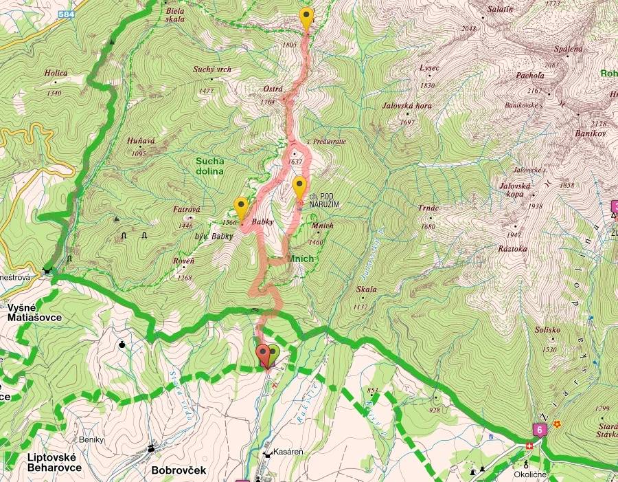 Trasa vedie po modrej značke popri kalvárii po zvážnici cez rázcestie Pod Babkami až na Chatu pod Náružím, kde je možnosť občerstviť sa. Trasa pokračuje po modrej značke do Sedla Predovratie, z ktorého stúpa po zelenej značke až na Sivý vrch (1805 m n.m.). Naspäť sa dá ísť po identickej trase, no túru si môžete obohatiť o návštevu vrchu Babky (1566 m n.m.) s unikátnym výhľadom a následne sa na rázcestí Pod Babkami napojiť na pôvodnú trasu. Počas trasy sa môžeme zastaviť pri partizánskom bunkri. Ide o jaskyňu s fotografiami a popisom, v ktorej sa skrývali partizáni.