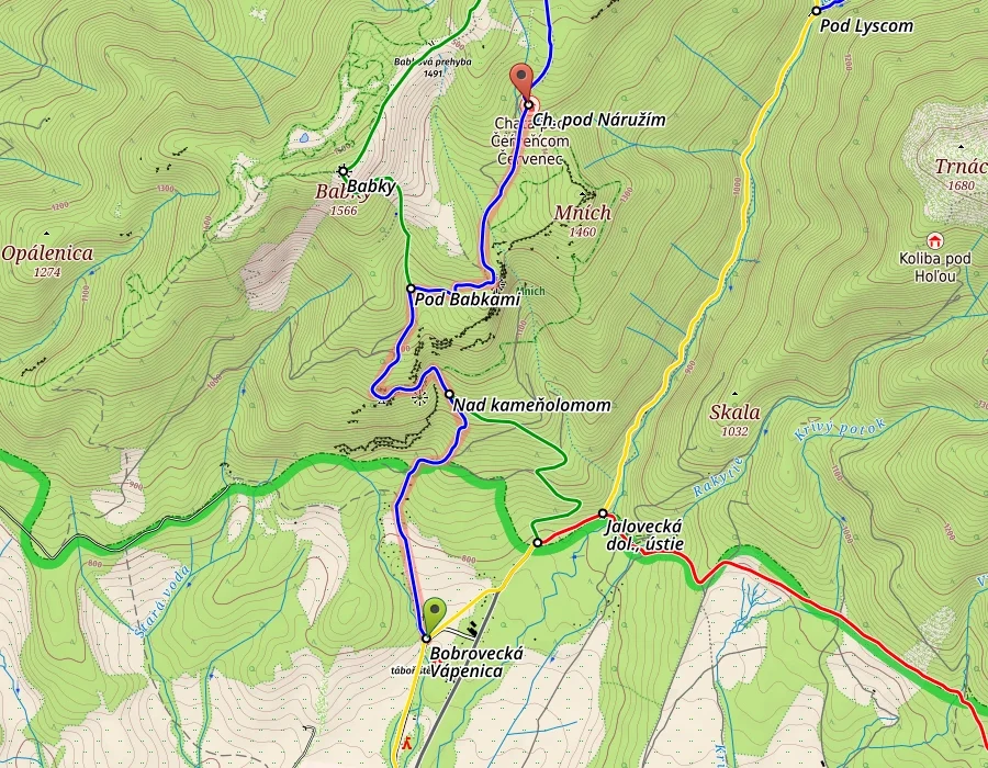 Chata pod Náružím (Červenec) je učupená v lone krásnej prírodnej scenérie Západných Tatier, obkolesená Babkami, Malou a Veľkou kopou, Ostrým, Sivým vrchom. Trasa ku chate sa začína na začiatku Bobroveckej doliny, konkrétne v lokalite Bobrovecká vápenica, kde je možnosť bezplatného zaparkovania. Trasa vedie po modrej značke popri kalvárii po zvážnici cez rázcestie Pod Babkami chodníkom, potom lesnou cestou až ku Chate pod Náružím.
