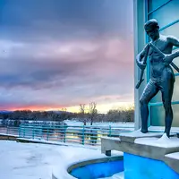 Súčasťou Piešťanského informačného centra je aj historický pitný pavilón, kde sú prezentované repliky ystavovaných historických plagátov kúpeľov Piešťany z konca 19. a prvej tretiny 20. storočia. Kúpeľnú atmosféru a liečbu návštevníkom priblížia vystavené zbierkové predmety zo zbierky Balneologického múzea Imricha Wintera – barle, fľaše na piešťanskú termálnu vodu, ktorá sa v minulosti podávala aj ako stolová voda, pamiatkové poháre s kúpeľnými motívmi, pitné poháre a suveníry z prvej polovice 20. storočia.