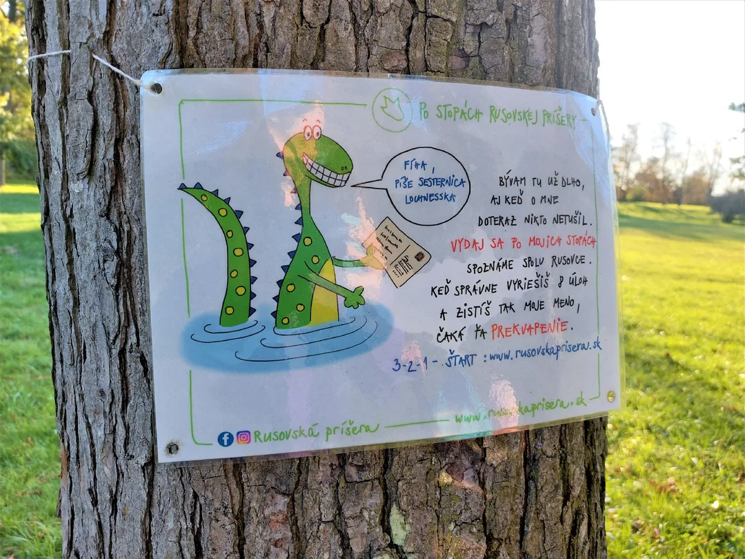 Vedeli ste, že aj na Slovensku žije príšera podobná tej Lochnesskej z Anglicka? Veru, je to tak. Bratranec Lochnesskej príšery žije v mestskej časti nášho hlavného mesta, a to konkrétne v Rusovskom jazere! Lochnesská príšera sa dokonca pokúsila tú našu rusovskú kontaktovať a napísala jej pohľadnicu priamo z Anglicka. Avšak, pani poštárka na pošte nedopatrením prevrhla na pohľadnicu atrament a meno príšery tak zostalo úplne zakryté. Existuje však spôsob ako ho zistiť. Stačí sa vydať po stopách rusovskej príšery a užiť si skvelú outdoorovú hru.
