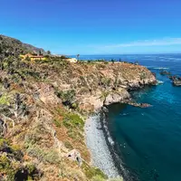 🐟 Playa de Las Arenas - rozprestiera sa v krásnej rybárskej dedine Candelaria, severovýchodne od Tenerife. Je to pokojná vulkanická pláž z čierneho sopečného piesku a štrku. Toto miesto, známe tiež ako pláž La Arena, je ľahko dostupné z promenády cez vlnolamy alebo po schodoch. Má zalesnené plochy na opaľovanie, sprchy a plážový kiosk. Okrem všetkých reštaurácií, zmrzlinární a obchodov sú tu vonkajšie telocvične a detské ihrisko.