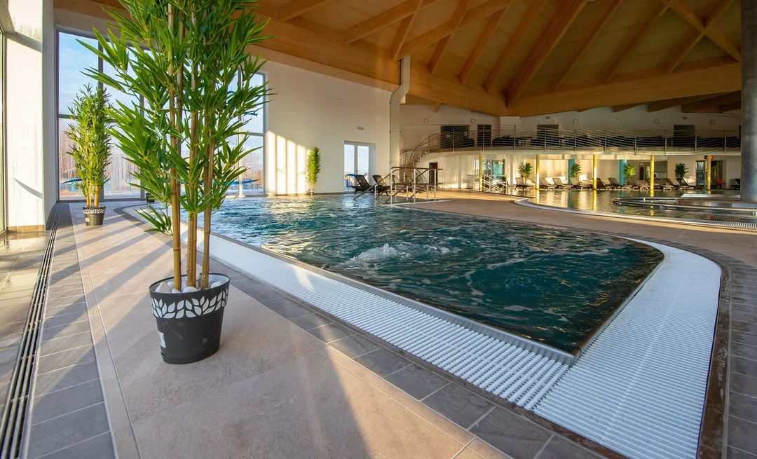 K najväčším pýcham zariadenia patrí veľký relaxačný bazén s hydromasážnymi prvkami, vodnými ležadlami, chrličmi, sprchami a divokou riekou, ktorá odplaví všetky vaše radosti. Pre tých, ktorí vyhľadávajú relax a pokoj, je pripravený hypertermálny pokojový bazén s úžasnou teplotou 34 – 36 °C. Najmenší návštevníci sa vyšantia v detskom bazéne so šmykľavkou a fontánou, odvážlivci zas môžu vyskúšať uzavretý adrenalínový tobogan.