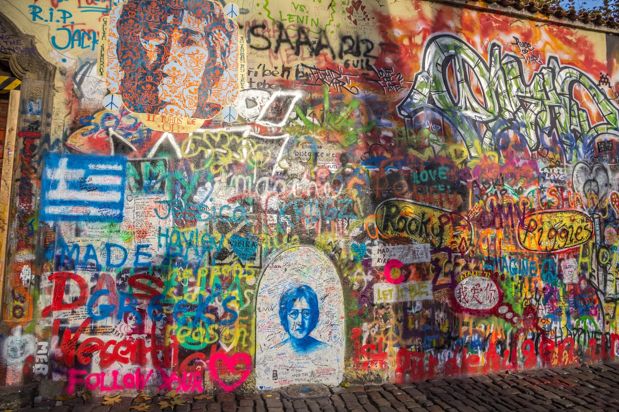 Zrejme najznámejší pestrofarebne pomaľovaný múr, ktorý symbolizuje hrob frontmana legendárnych Beatles Johna Lennona, stojí na Velkopřevorskom námestí na Malej Strane. Toto miesto je symbolicky spojené s mierumilovným odporom voči násiliu a nespravodlivosti kdekoľvek na svete.