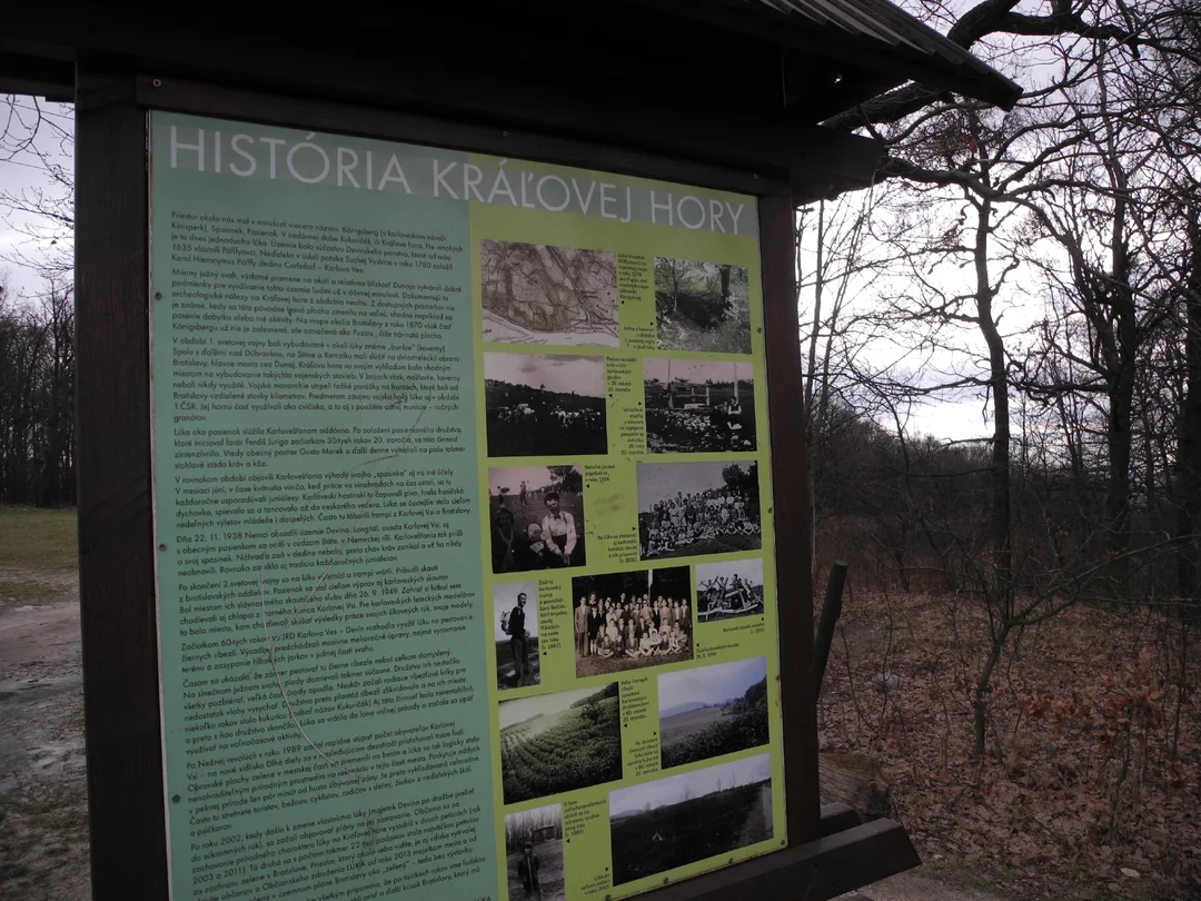 Rozľahlá lúka s nadmorskou výškou 281 metrov, si svoju popularitu získala hlavne výbornou dostupnosťou, parádnymi výhľadmi a širokými možnosťami využitia. Keď sa z tohto miesta zadívate na juh smerom do Rakúska, uvidíte kopce prírodnej rezervácie Hundsheimer Berge, populárnu rozhľadňu Königswarte, Braunsberg či mestečko Hainburg. Smerom na západ zas vašu dušu uchváti pohľad na masív Devínskych Karpát a Devínsku Kobylu.