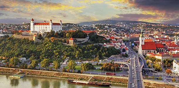 2 dni Bratislava – hlavné mesto Slovenskej republiky leží na juhozápade a je sídlom viacerých dôležitých inštitúcii. Bratislava je plná kultúrnych pamiatok, z ktorých mnohé sa nachádzajú v Starom Meste. Mestská pamiatková rezervácia je jedna z najväčších na Slovensku. Dominantou mesta je Bratislavský hrad, vedľa ktorého sa nachádza budova Národnej rady SR a tiež Dóm sv. Martina.