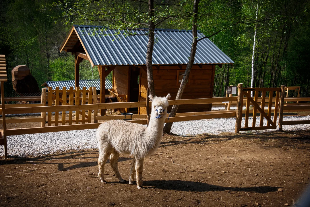 Súčasťou parku je veľká priechodná ohrada s alpakami a poníkmi. Môžete ich tu pozorovať a kŕmiť priamo z chodníka. Tieto zvedavé bytosti sú veľmi prítulné a radi spoznávajú nových ľudí.