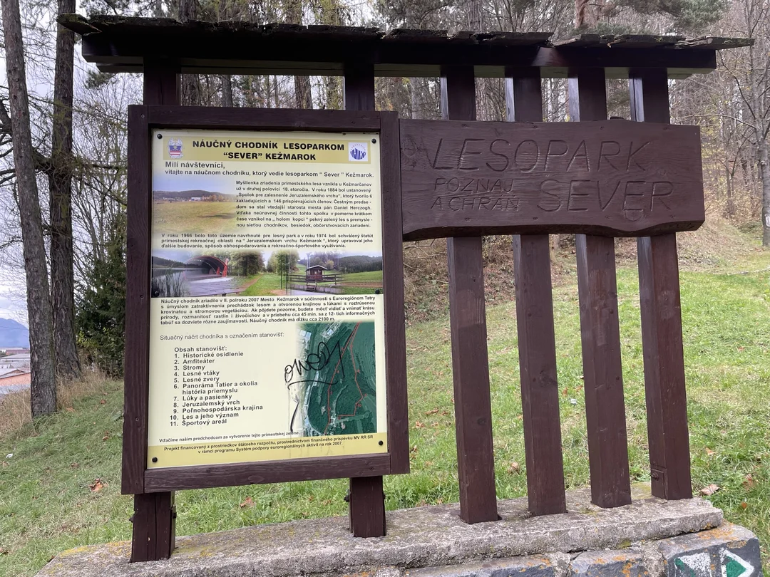 Náučný chodník Lesopark sa začína na sídlisku Sever v Kežmarku pri soche lyžiara pod bývalým hotelom Štart. Trasa je označená zelenou miestnou turistickou značkou. Neváhajte tento chodník absolvovať aj s najmenšími. Náučný chodník má ľahkú náročnosť a môže to byť príjemná víkendová prechádzka. Jeho celková dĺžka je 2,4 km. Na 11 informačných tabuliach sa dozviete rôzne zaujímavosti zo sveta fauny a flóry, ale taktiež aj zaujímavosti o histórií dotknutého krajinného prostredia. Zaujímavosťou je, že sa tu nachádza okolo 17 lesných drevín vo veku od 80 do 120 rokov. Trasa vedie rôznymi lúkami a ponúka krásne výhľady či možnosť opekania. Pokiaľ ste milovníkmi cyklistiky, lesopark je vhodným miestom aj pre Vás. Avšak nepodceňte viaceré úseky so stúpaním.