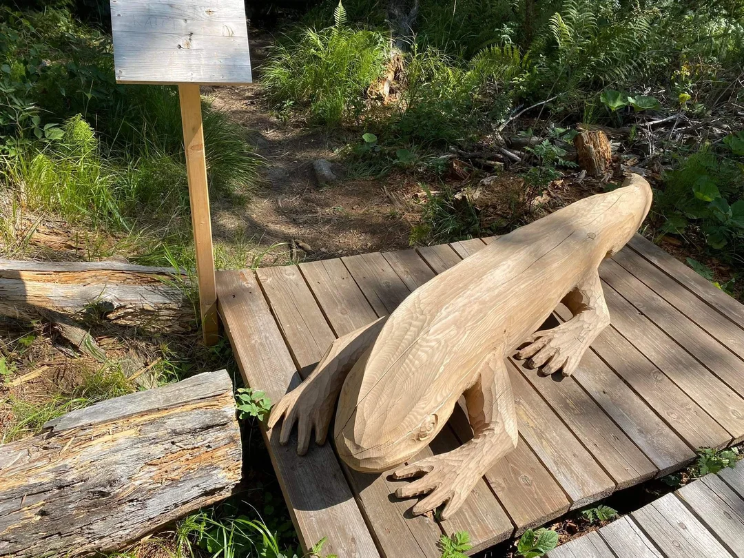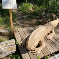 Veľmi nás na chodníku zaujala drevená podoba zvieratka, pravdepodobne salamandry alebo jašterice, priamo pri vstupe na náučný chodník. Okolie chodníka Pramenisko je lemované krásnymi drevinami a zeleňou. Počas prechádzky týmto chodníkom sme si užili štebotanie vtáčikov a načerpali sme kľud, ktorý z tohto lesa pramení.