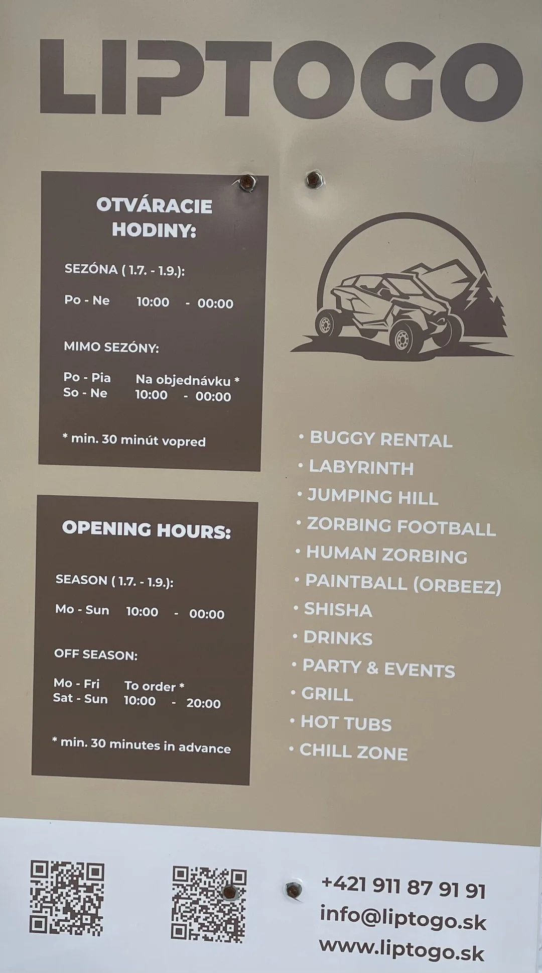 V priestoroch kde sa nachádza labyrint je aj množstvo iných aktivít. Zábavný park, ktorý je vhodný pre všetky vekové kategórie sa rozprestiera na ploche približne 50 000 m². Spoločnosť sa volá Liptogo a ponúkajú aj buggy rental, jumping hill, zorbing football, human zorbing a paintball s gélovými bezbolestnými guličkami (orbeez). Pri iných aktivitách odporúčame rezerváciu vopred.