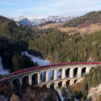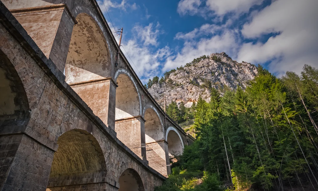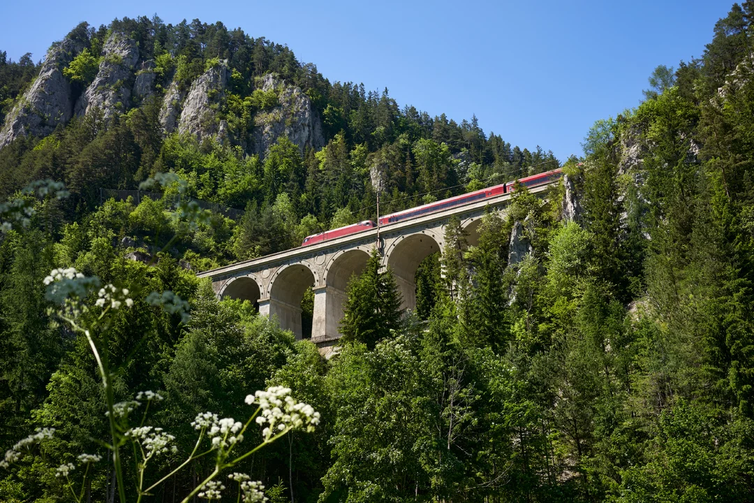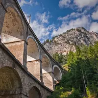 Počas jazdy legendárnou Semmeringskou železnicou sa pred vami otvorí scenéria viac ako 40 kilometrov dlhého úseku so 14 tunelmi, 16 viaduktmi a vyše 100 kamennými mostmi, ktoré pôsobia ako umelecké diela. Najznámejším je 184 metrov dlhý Kalte-Rinne viadukt, ktorý sa elegantne klenie ponad údolie. Okrem samotnej jazdy si môžete spraviť zastávku pri vyhliadkových miestach „20-Schilling Blick“ či Bahnhof Semmering, odkiaľ je krásny pohľad na viadukty v kontraste s horskou krajinou.