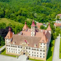 Vnútri si nenechajte ujsť Planetárnu sieň (Planetary Room) s bohato zdobenými stropmi a maľbami od dvorného maliara Hansa Adama Weissenkirchera z roku 1685, ktoré kombinujú astrológiu, numerológiu a rodinnú mytológiu do pôsobivej barokovej alegórie „Zlatej éry“ rodu Eggenberg.