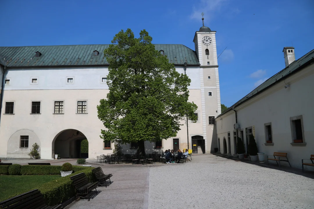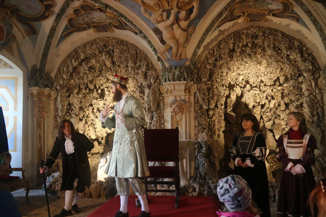 Počas presunu na nádvorie, vás môže prekvapiť hlučný piskot, no nebojte sa, to vás iba zdravia miestne pávy. Ak budete mať šťastie, možno sa vám ukážu v plnej paráde. Dokonca sme jedného raz objavili, ako si práve ďobal do vlastného odrazu, ktorý videl v aute. Mal ho tam odparkované asi miestny kastelán, ktorému poďobané auto zjavne nevadilo.